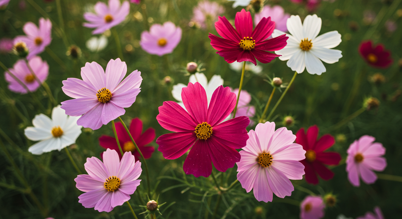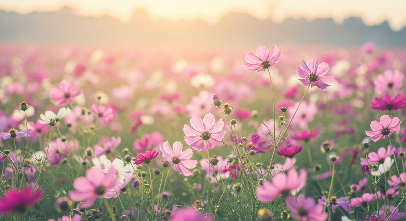 코스모스 꽃밭: 가을을 수놓는 아름다운 물결